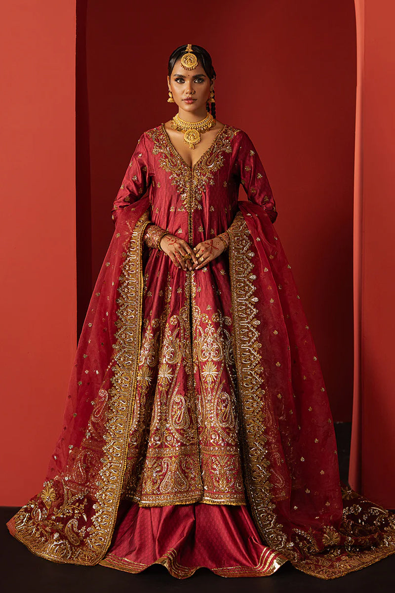 RED PP RAW SILK 55" DIGITAL PRINTED EMBROIDERED BACK 2.60 M