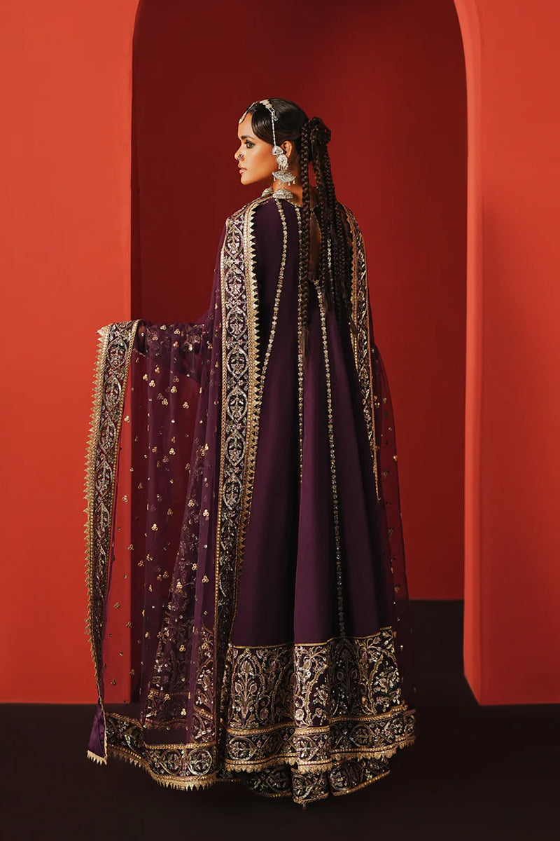 PURPLE RAW SILK 39" EMBROIDERED FRONT+BACK BORDER A 3.95 M