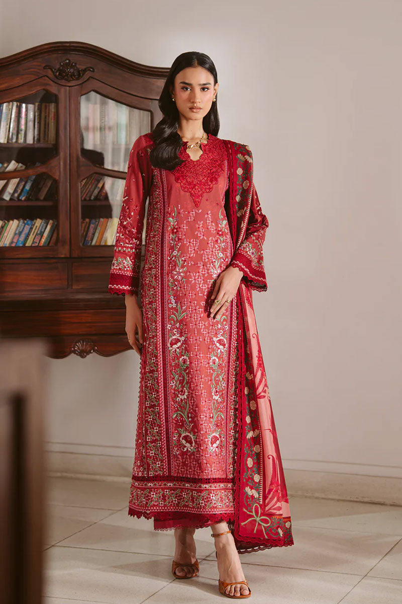 Lawn Red Digital Printed Embroidered Sleeve 2 Pc