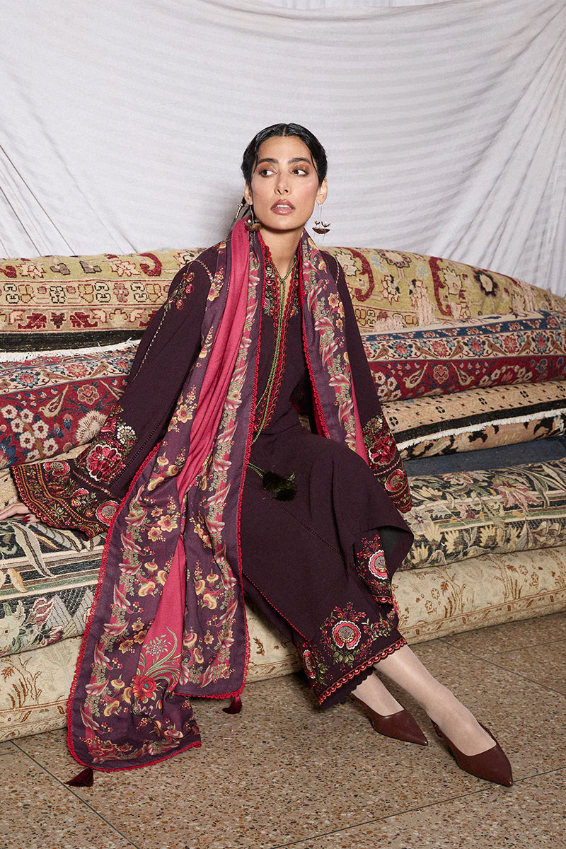 Digital Printed Shawl (Wool) 2.5 Meters Embroidered Front Center Panel (Karandi) 1 Piece Embroidered Back Center Panel...