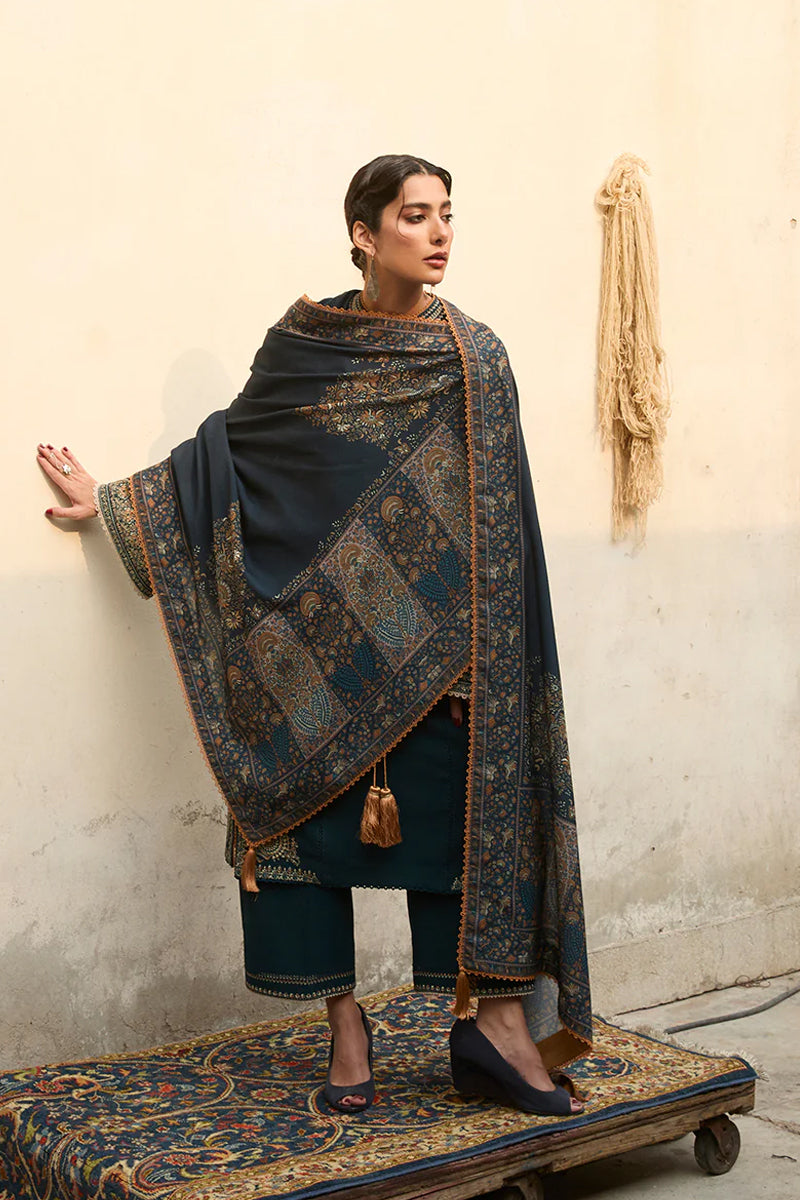 Digital Printed Shawl (Wool) 2.5 Meters Embroidered Front Center Panel (Karandi) 1 Piece Embroidered Front Right Panel...