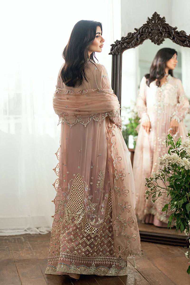 • Embroidered, sequinned pearl embellished front daman border (organza)