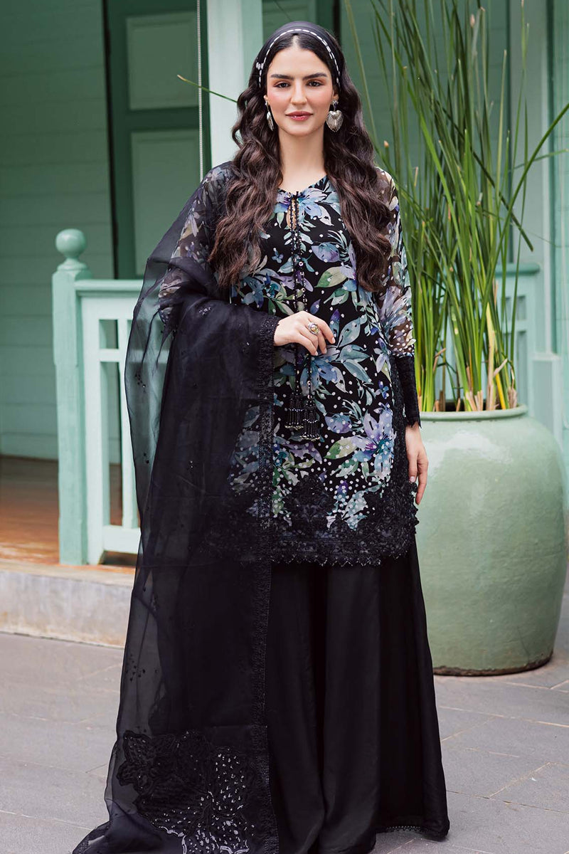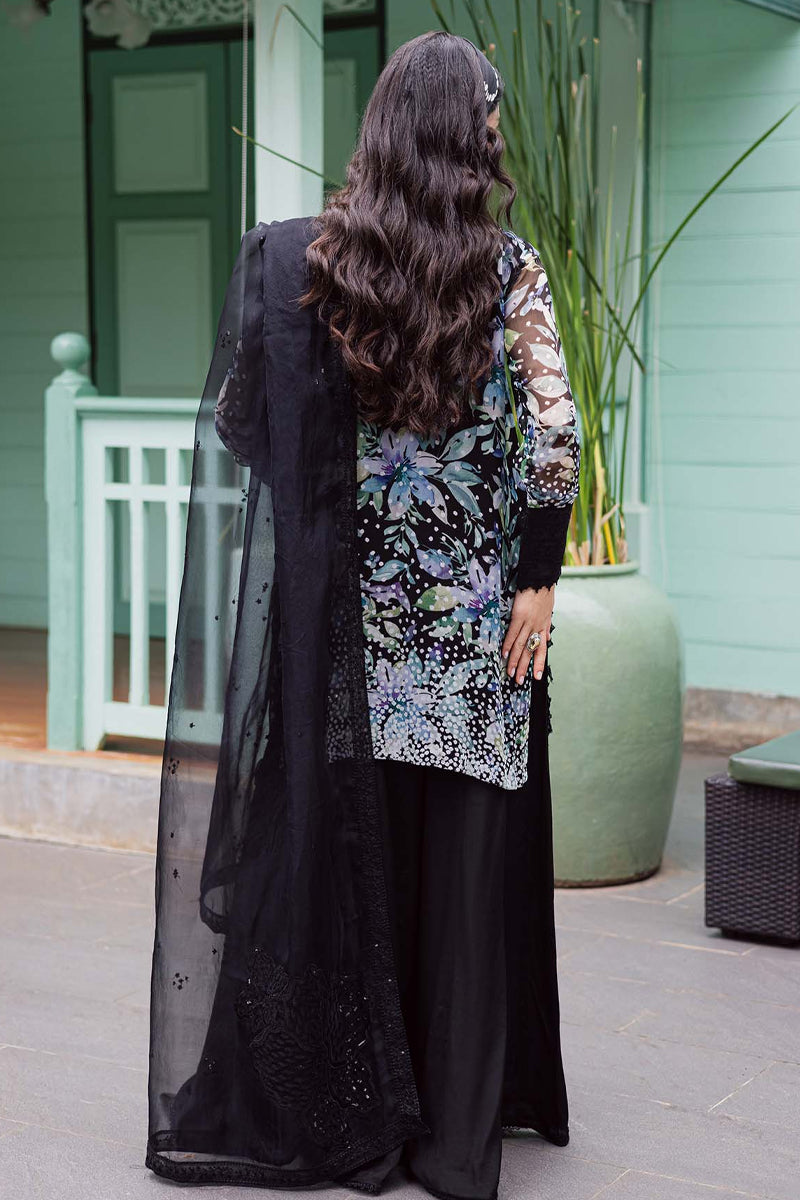 Printed And Embroidered Chiffon Shirt Embroidered Stitched Organza Dupatta Dyed Rawsilk Trouser And Inner