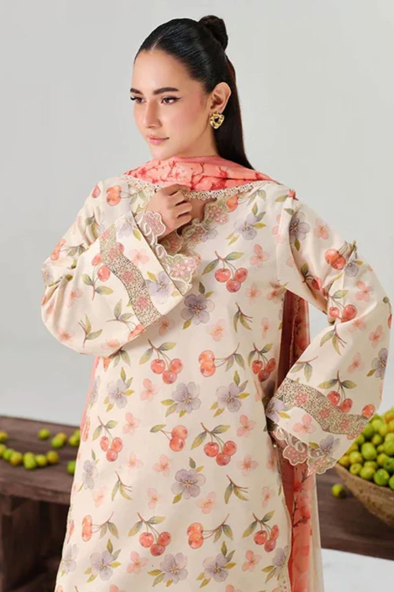 Fabric DetailsUnstitched Digital Printed Embroidered Lawn ShirtWith Digital Printed Dupatta &Digital Printed Trouser.(Include Embroidered Organza Patches)