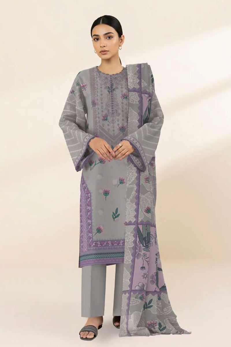 Digital Printed Embroidered Lawn Shirt 3mDigital Printed Voile Dupatta 2.5mDyed Cotton Trouser 2.5m